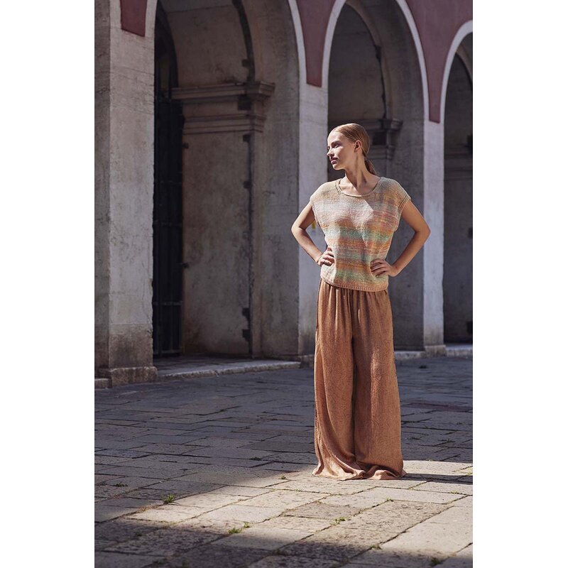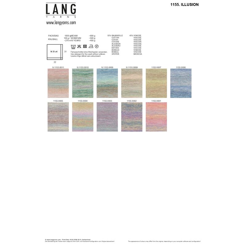 ILLUSION, eine Mischung aus Baumwolle und Bambusviskose, zeichnet sich durch seine einzigartige Farbgebung aus. Jeder Faden wird vor dem Verzwirnen separat mit demselben Farbverlauf bedruckt, was zu ständig wechselnden Farbkombinationen im gesamten Garn führt. Beim Stricken oder Häkeln erzeugt diese Mouliné-Konstruktion eine Fläche mit einer gleichmäßigen Farbverteilung, die einen schillernden, fast hypnotischen Effekt erzeugt, der an eine Illusion oder eine Fata Morgana erinnert.